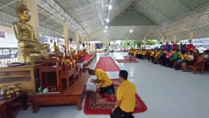พิธีทางศาสนาถวายสังฆทานเรื่องไทยธรรมแบบพระสงฆ์ถวายอาหารเพลแด่พระสงฆ์